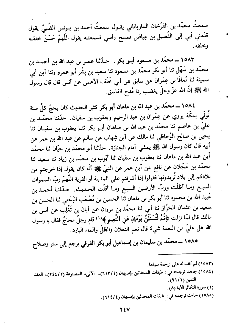 §1585 - مُحَمَّدُ بْنُ سُلَيْمَانَ بْنِ إِسْمَاعِيلَ أَبُو بَكْرٍ الْفَرَقِيُّ يَرْجِعُ إِلَى سَتْرٍ وَصَلَاحٍ -[248]-، كَتَبَ بِالْعِرَاقِ وَالْحِجَازِ الْكَثِيرَ