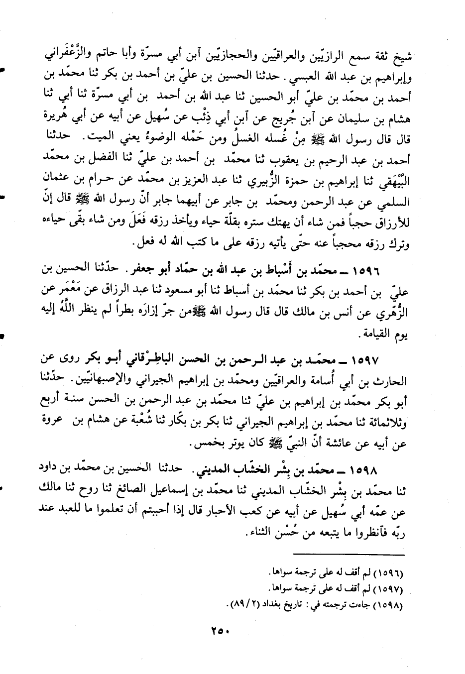 §1597 - مُحَمَّدُ بْنُ عَبْدِ الرَّحْمَنِ بْنِ الْحَسَنِ الْبَاطِرْقَانِيُّ أَبُو بَكْرٍ رَوَى عَنِ الْحَارِثِ بْنِ أَبِي أُسَامَةَ، وَالْعِرَاقِيِّينَ، وَمُحَمَّدِ بْنِ إِبْرَاهِيمَ الْجِيرَانِيِّ، وَالْأَصْبَهَانِيِّينَ