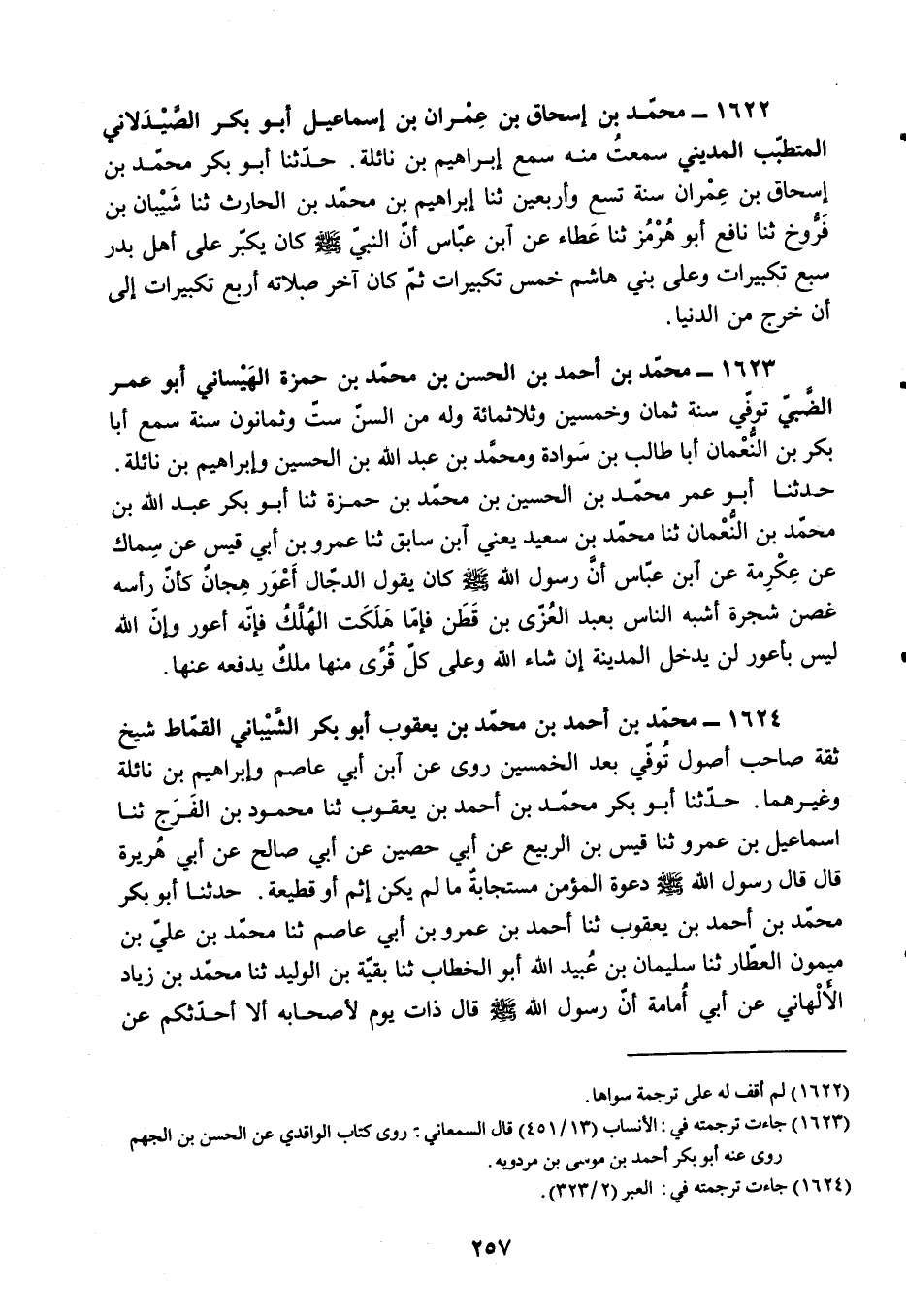 §1622 - مُحَمَّدُ بْنُ إِسْحَاقَ بْنِ عِمْرَانَ بْنِ إِسْمَاعِيلَ أَبُو بَكْرٍ الصَّيْدَلَانِيُّ الْمُتَطَبِّبُ الْمَدِينِيُّ سَمِعْتُ مِنْهُ، سَمِعَ إِبْرَاهِيمَ بْنَ نَائِلَةَ