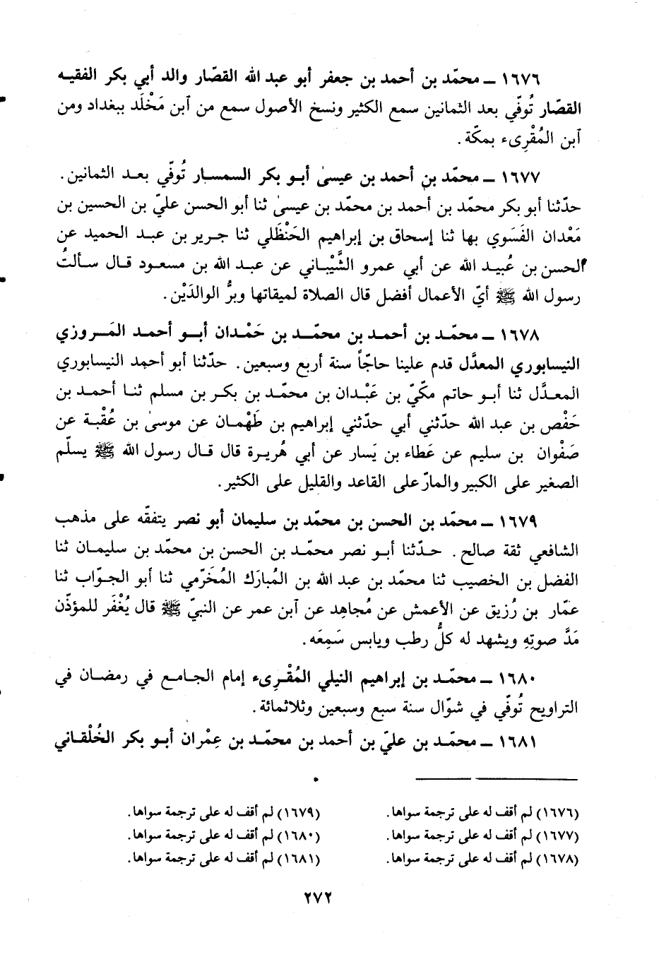 §1678 - مُحَمَّدُ بْنُ أَحْمَدَ بْنِ مُحَمَّدِ بْنِ حَمْدَانَ أَبُو أَحْمَدَ الْمَرْوَزِيُّ النَّيْسَابُورِيُّ الْمُعَدَّلُ قَدِمَ عَلَيْنَا حَاجًّا سَنَةَ أَرْبَعٍ وَسَبْعِينَ