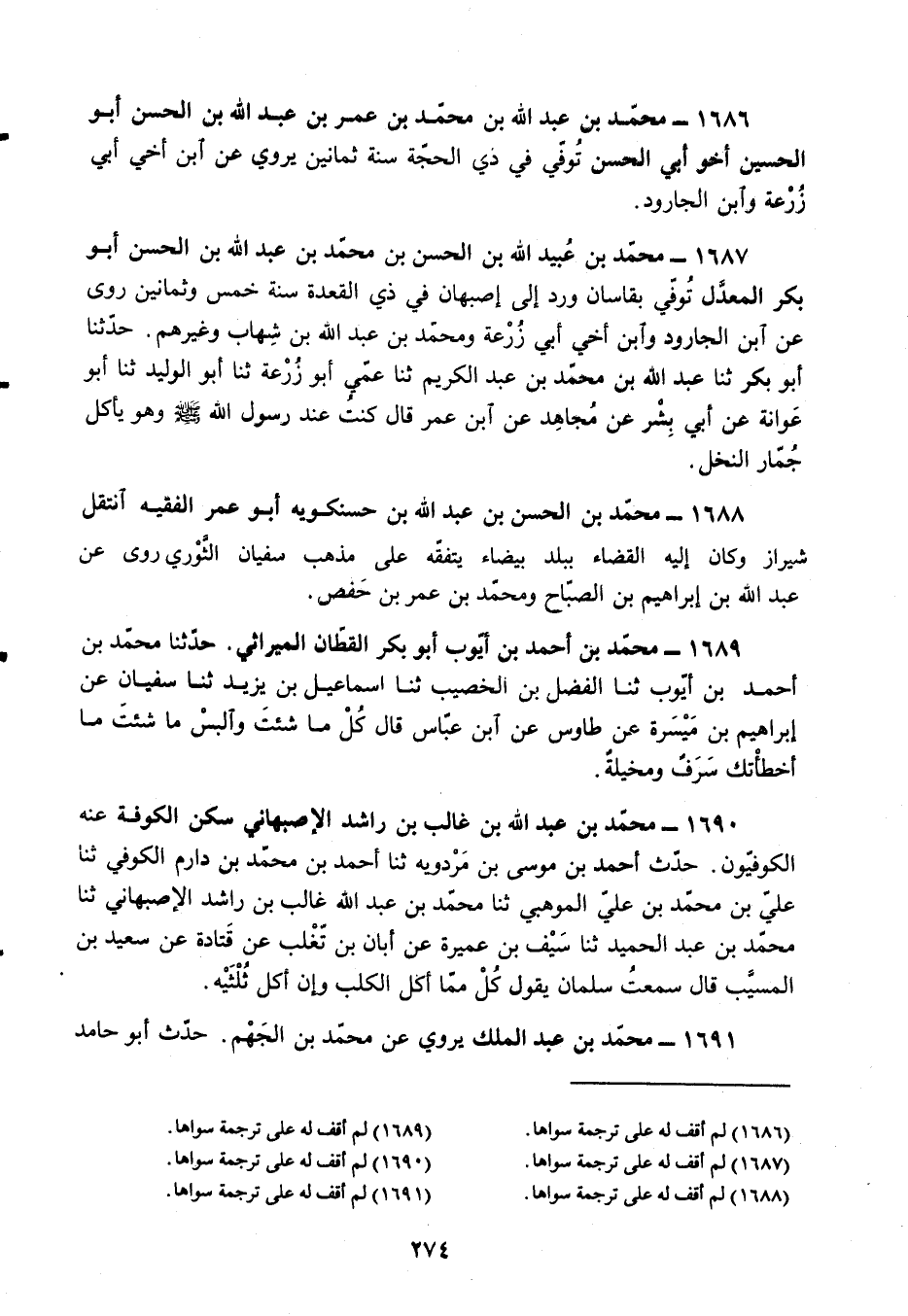 §1690 - مُحَمَّدُ بْنُ عَبْدِ اللَّهِ بْنِ غَالِبِ بْنِ رَاشِدٍ الْأَصْبَهَانِيُّ سَكَنَ الْكُوفَةَ، وَرَوَى عَنْهُ الْكُوفِيُّونَ