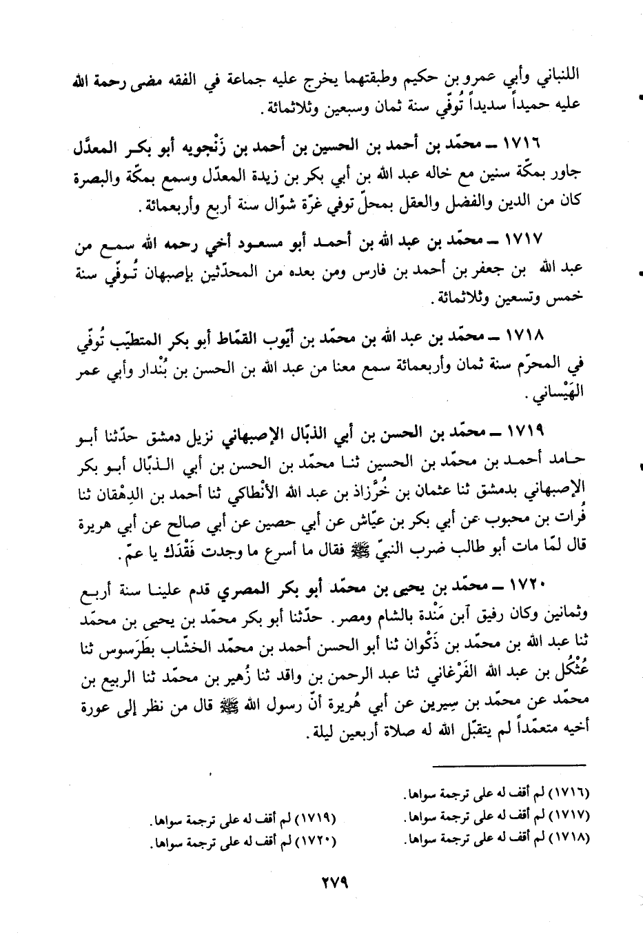 §1720 - مُحَمَّدُ بْنُ يَحْيَى بْنِ مُحَمَّدٍ أَبُو بَكْرٍ الْمِصْرِيُّ قَدِمَ عَلَيْنَا سَنَةَ أَرْبَعٍ وَثَمَانِينَ، وَكَانَ رَفِيقُ ابْنِ مَنْدَهْ بِالشَّامِ وَمِصْرَ