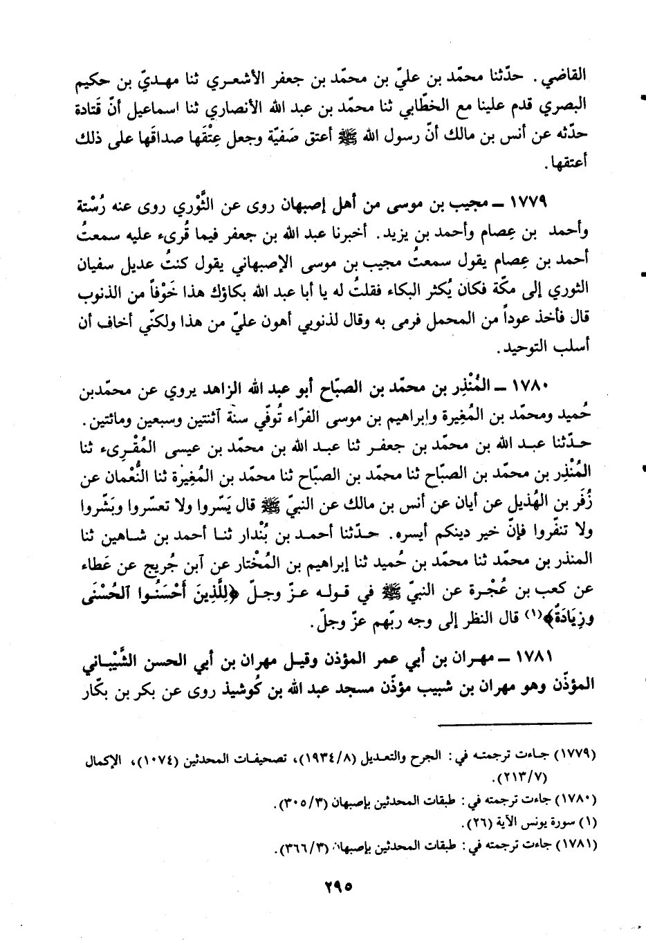 §1780 - الْمُنْذِرُ بْنُ مُحَمَّدِ بْنِ الصَّبَّاحِ أَبُو عَبْدِ اللَّهِ الزَّاهِدُ يَرْوِي عَنْ مُحَمَّدِ بْنِ حُمَيْدٍ، وَمُحَمَّدِ بْنِ الْمُغِيرَةِ، وَإِبْرَاهِيمَ بْنِ مُوسَى الْفَرَّاءِ، تُوُفِّيَ سَنَةَ اثْنَتَيْنِ وَسَبْعِينَ وَمِائَتَيْنِ