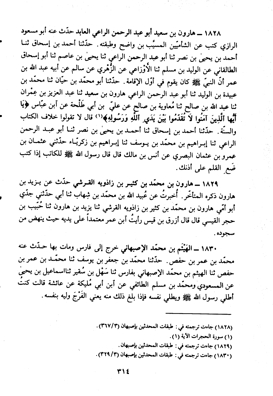 §1828 - هَارُونُ بْنُ سَعِيدٍ أَبُو عَبْدِ الرَّحْمَنِ الرَّاعِي الْعَابِدُ حَدَّثَ عَنْهُ أَبُو مَسْعُودٍ الرَّازِيُّ، كَتَبَ عَنِ الشَّامِيِّينَ: الْمُسَيَّبِ بْنِ وَاضِحٍ وَطَبَقَتِهِ