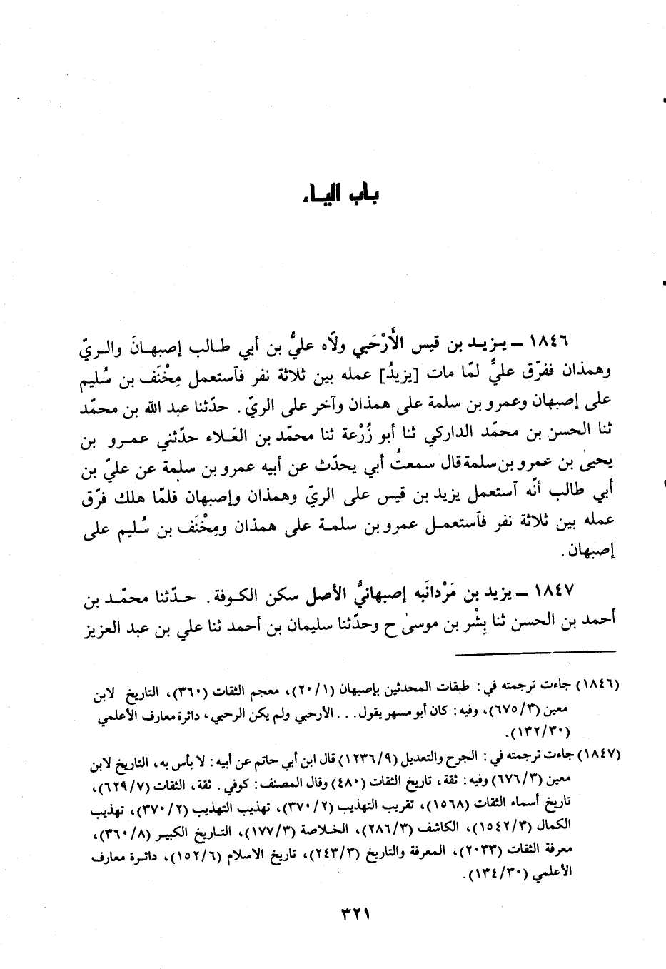 §1846 - يَزِيدُ بْنُ قَيْسٍ الْأَرْحَبِيُّ وَلَّاهُ عَلِيُّ بْنُ أَبِي طَالِبٍ أَصْبَهَانَ وَالرَّيَّ وَهَمَذَانَ، فَفَرَّقَ عَلِيٌّ لَمَّا مَاتَ يَزِيدُ عَمَلَهُ بَيْنَ ثَلَاثَةِ نَفَرٍ، فَاسْتَعْمَلَ مِخْنَفَ بْنَ سُلَيْمٍ عَلَى أَصْبَهَانَ، وَعَمْرَو بْنَ سَلَمَةَ عَلَى هَمَذَانَ، وَآخَرَ عَلَى الرَّيِّ