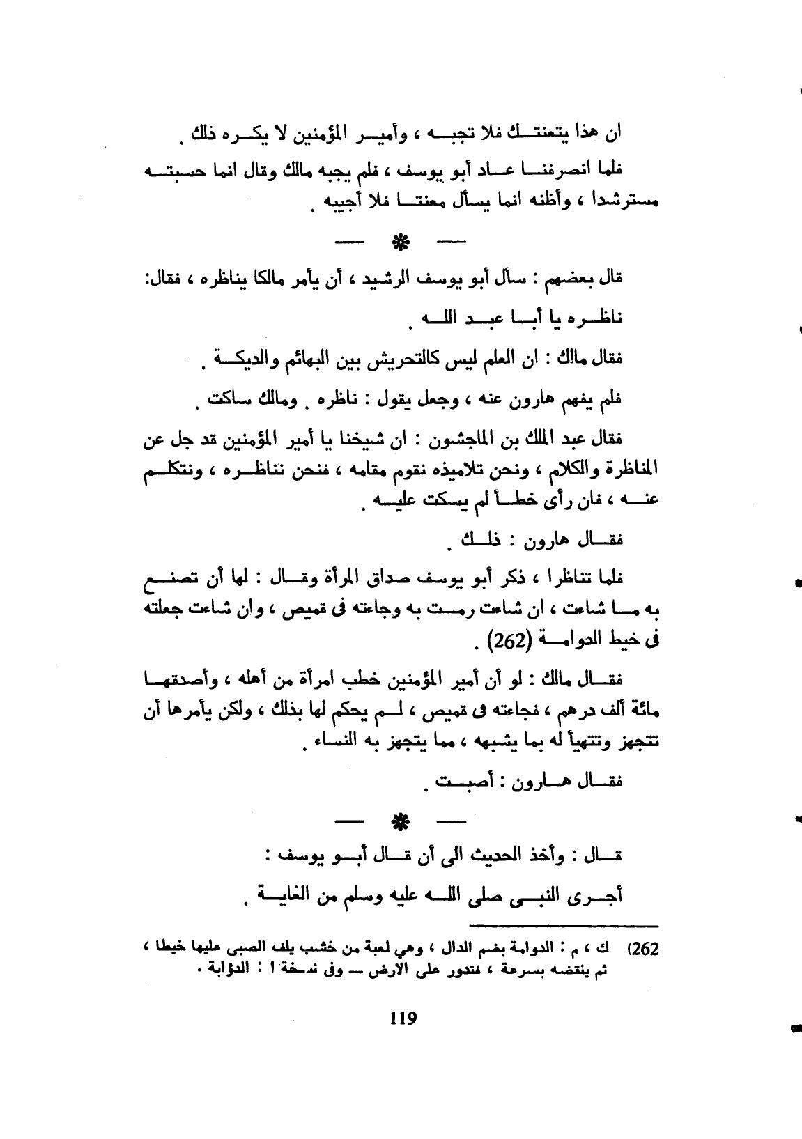 ولكن يأمرها أن تتجهز وتتهيأ له بما يشبهه مما يتجهز به النساء فقال هارون أصبت قال وأخذ الحديث إلى أن قال أبو يوسف أجرى النبي صلى الله عليه وسلم