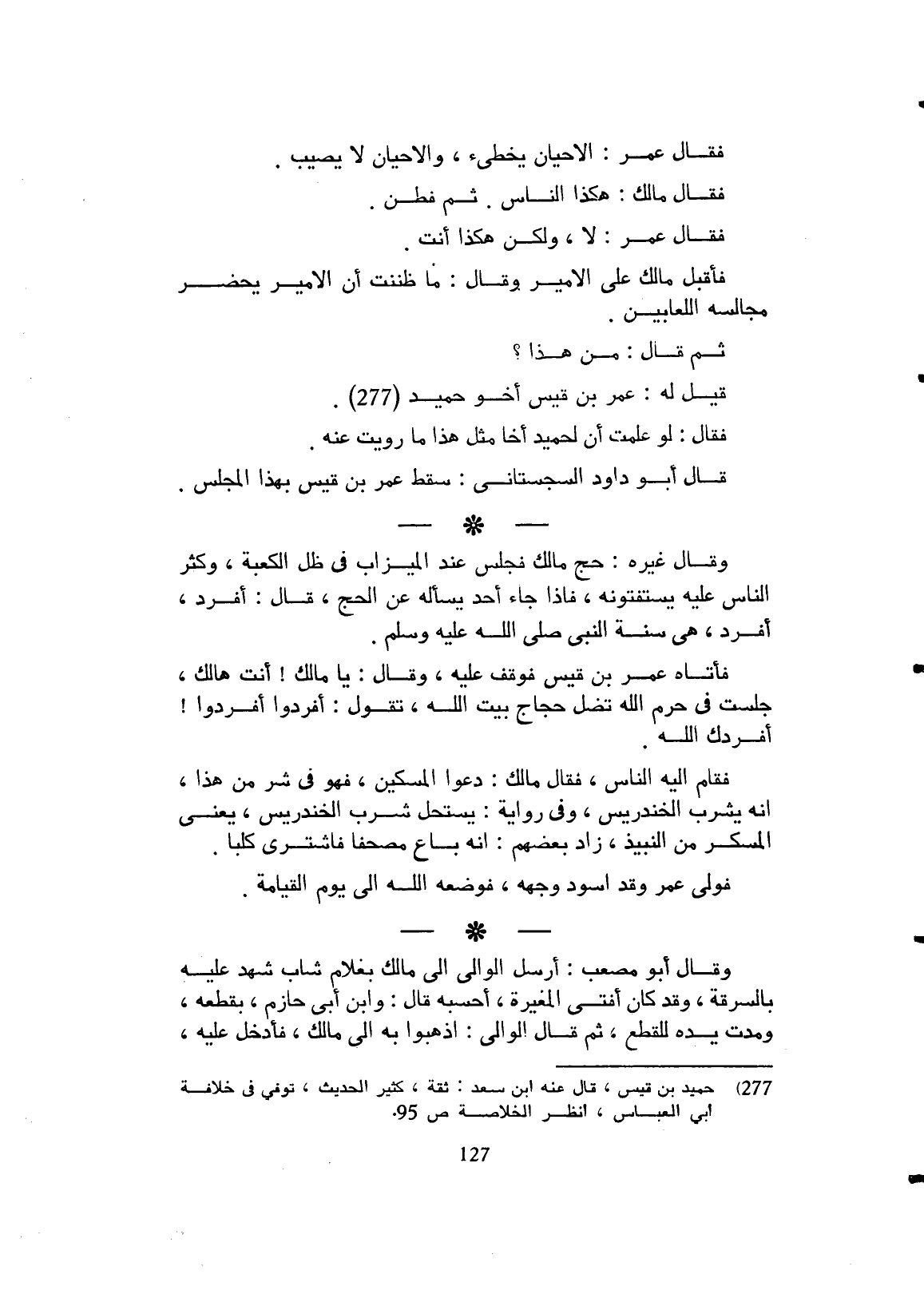 ثم فطن فقال عمر: لا لكن هذا أنت فقام مالك على الأمير وقال ما ظننت أن ألأمير يحضر مجلسه اللعابين.