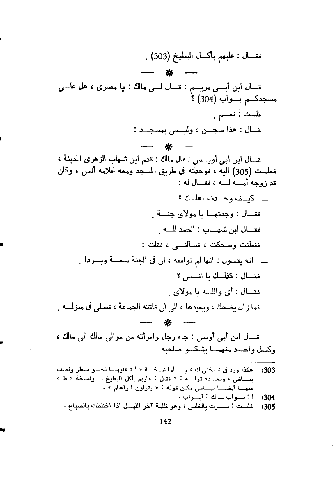 وقال ابن أبي أويس، قال مالك: قدم ابن شهاب الزهري المدينة فغلست إليه، فوجدته في طريق المسجد ومعه غلامه أنس وكان قد زوجه أمة له، فقال له: كيف وجدت أهلك؟ فقال: وجدتها يا مولاي جنة.