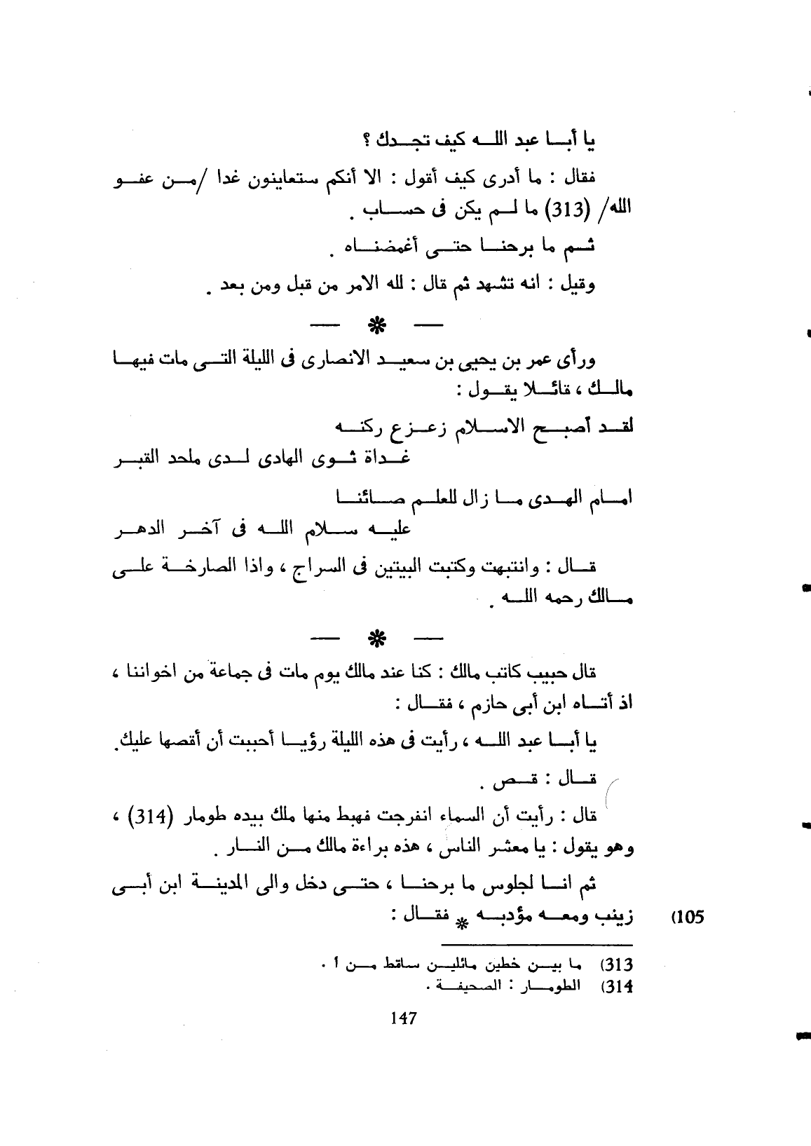 يا أبا عبد الله كيف تجدك؟ قال ما أدري، ما نقول إلا أنكم ستعاينون غداً من عبد الله من لم يكن في حساب.