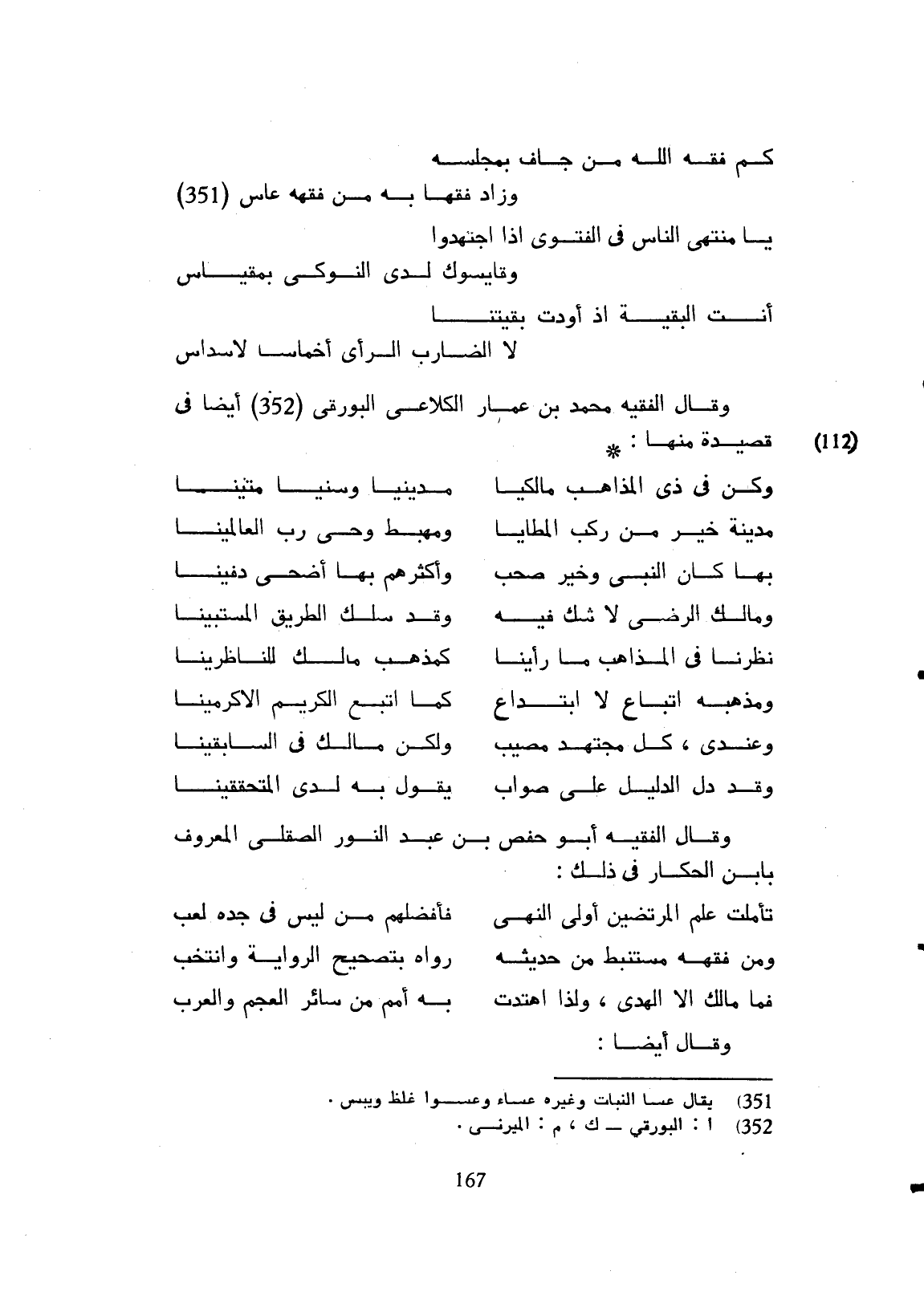 وكن في ذي المذاهب مالكياً ... مدينياً وسنياً متينا