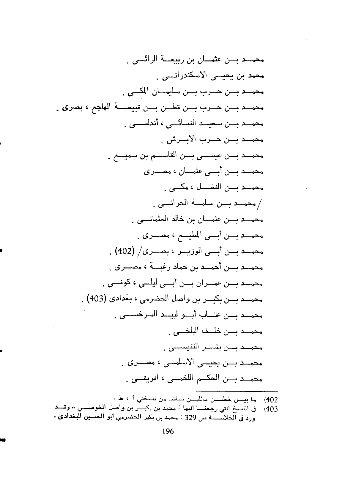 محمد ابن عثمان بن ربيعة الرأي. محمد بن يحيى الإسكندراني. محمد بن حرب ابن سليمان المكي. محمد بن حرب بن قطر بن قبيصة الهمامي بصري. محمد ابن سعيد السبابي أندلسي. محمد بن حرب الأبرش. محمد بن عيسى بن القاسم ابن سميع. محمد بن أبي عثمان مصري. محمد بن الفضل مكي. محمد بن مسلمة الحراني. محمد بن عثمان بن خالد العثماني. محمد بن أبي المطيع بصري. محمد بن أبي الوزير مصري. محمد بن أحمد بن حماد زغبة بصري. محمد بن عمران بن أبي ليلى كوفي. محمد بن بكير بن واصل الحضرمي بغدادي. محمد بن عتاب أبو الوليد السرخسي. محمد بن خلف البلخي. محمد بن بشر التنسي. محمد بن يحيى الأسلمي بصري. محمد بن حكم اللخمي افريقي.