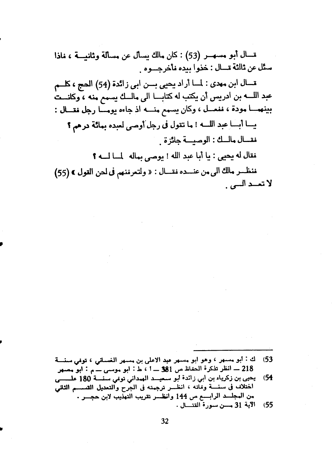فقال له يحيى يا أبا عبد الله يوصي بماله لماله؟ فنظر مالك إلى من عنده فقال.