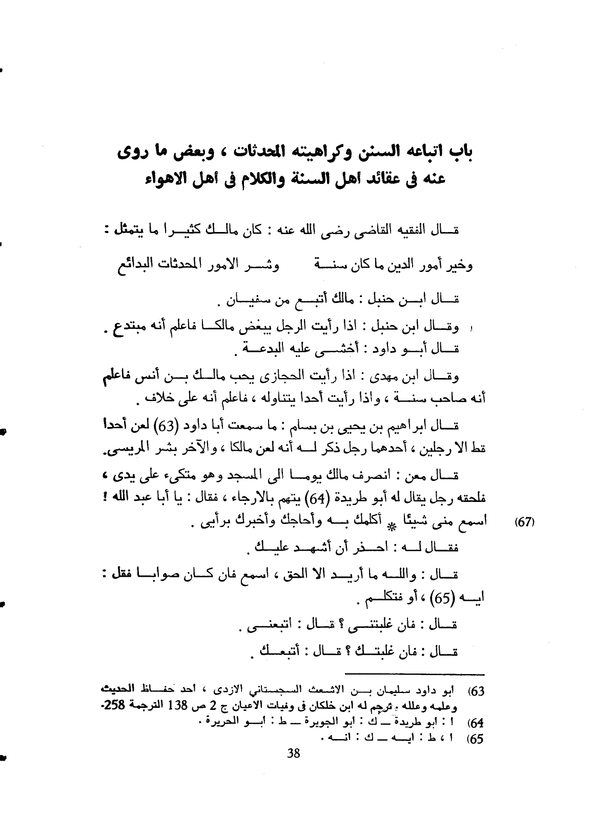 وكراهيته المحدثات وبعض ما روي عنه في عقائد أهل السنة والكلام في أهل الأهواء.