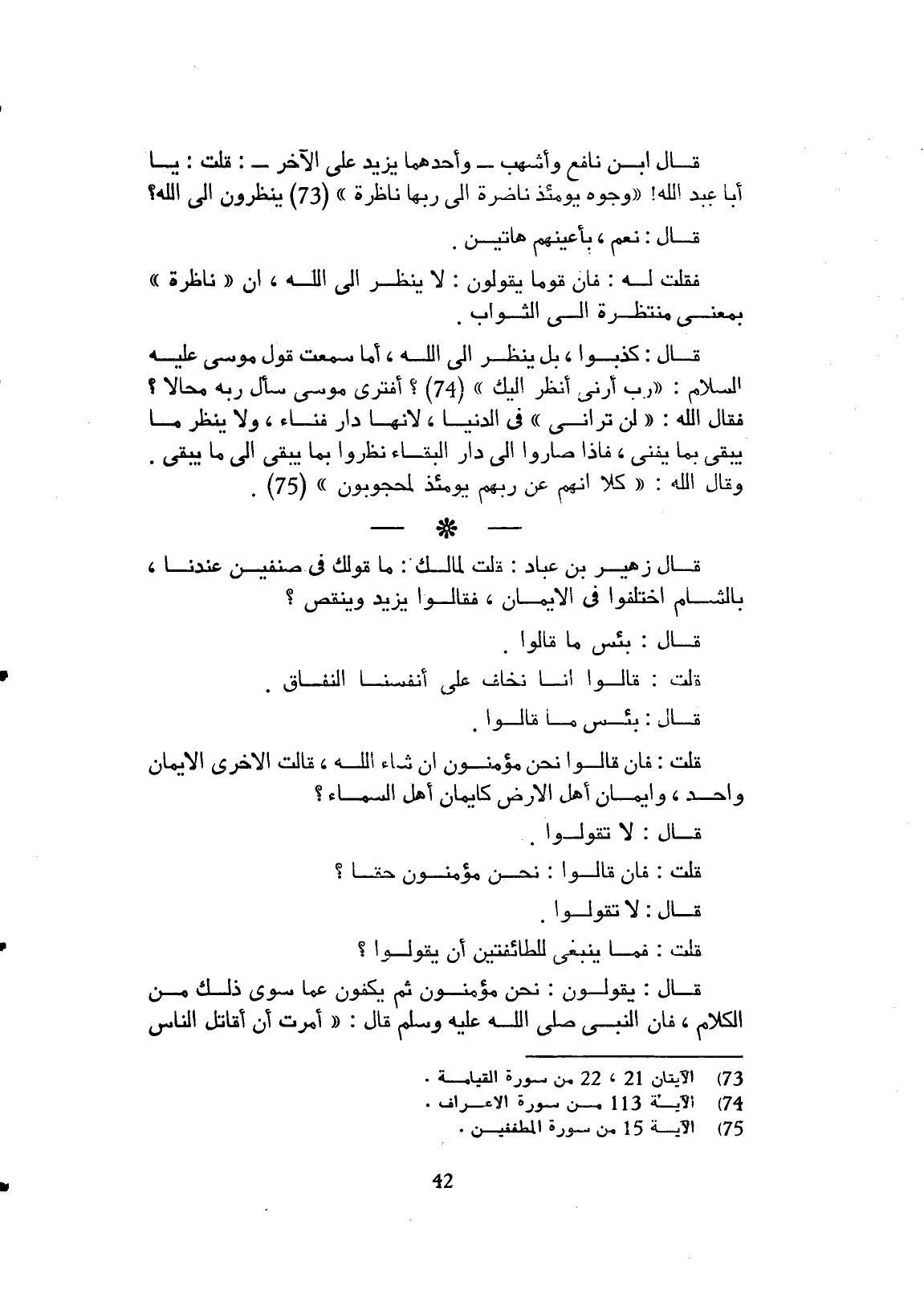 فقلت له فإن قوماً يقولون لا ينظر إلى الله إن، ناظرة بمعنى منتظرة إلى الثواب.