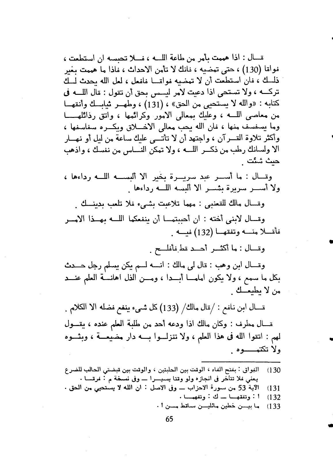 وقال مالك للقعنبي مهما تلاعبت بشيء فلا تلعبن بدينك.