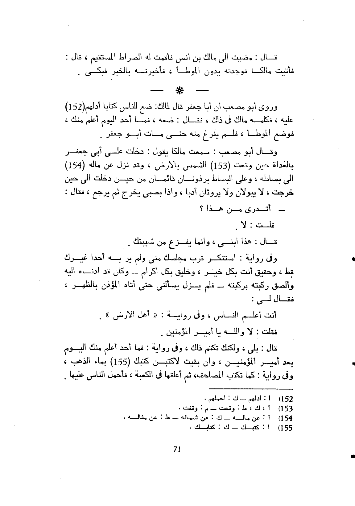 قال مضيت إلى مالك بن أنس فأقمت له الصراط المستقيم.