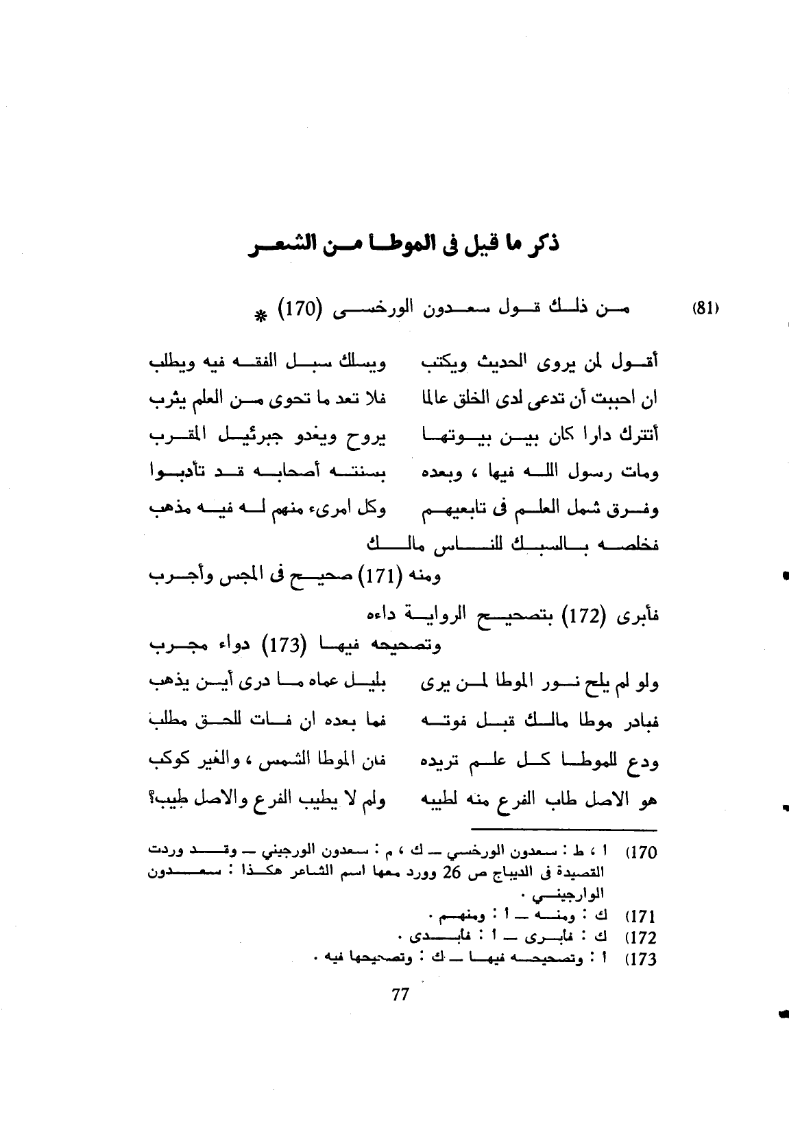 ودع للموطأ كل علم تريده ... فأن الموطأ الشمس والغير كوكب