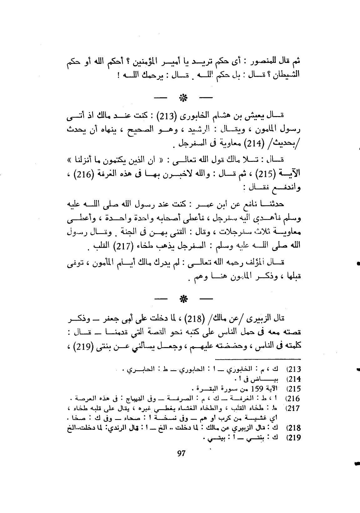ثم قال للمنصور أي حكم تريد يا أمير المؤمنين أحكم الله أم حكم الشيطان؟ قال لا بل حكم الله.