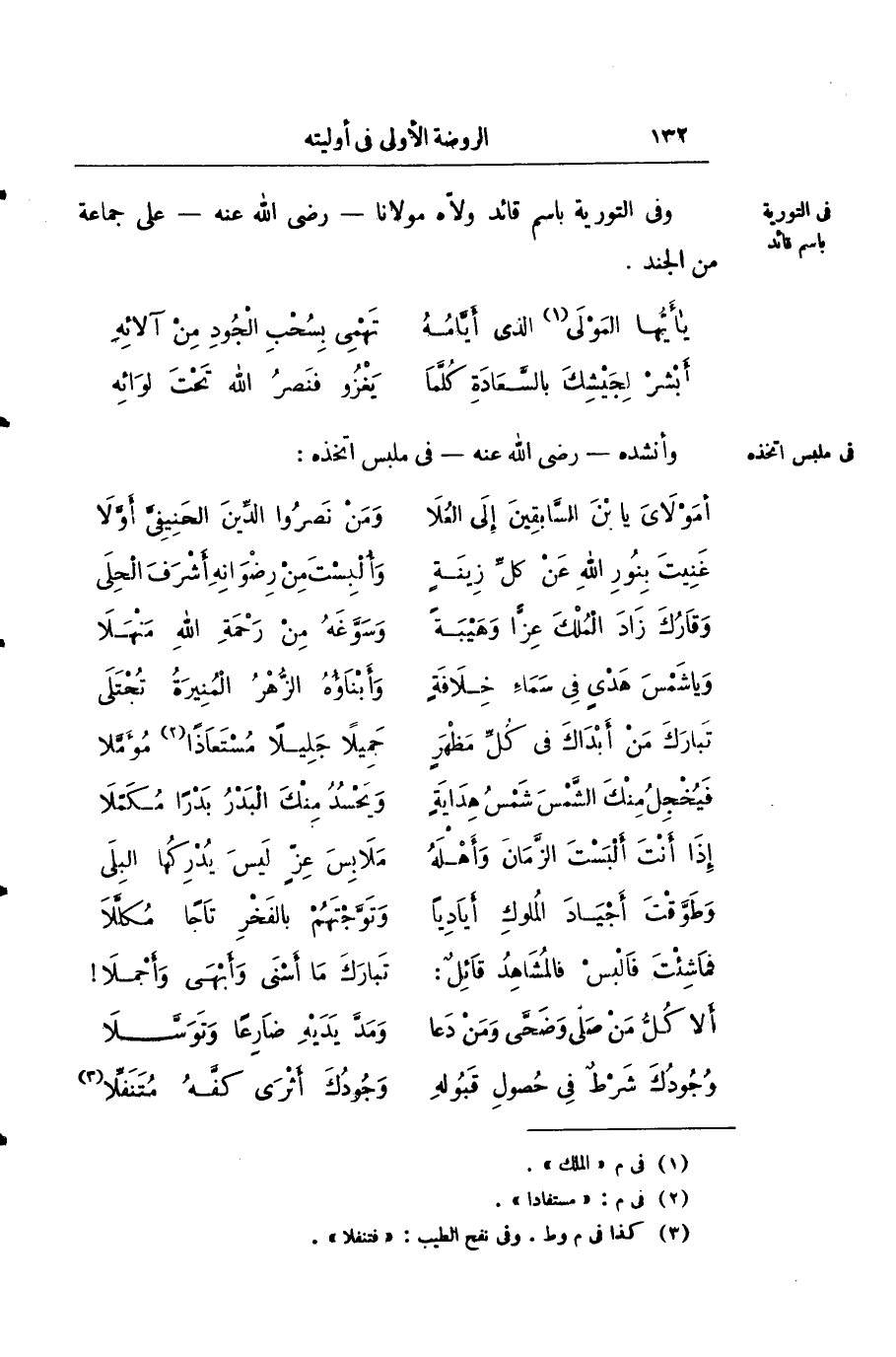 وفي التورية باسم قائد مولاه مولانا رضي الله عنه على جماعة من الجند: