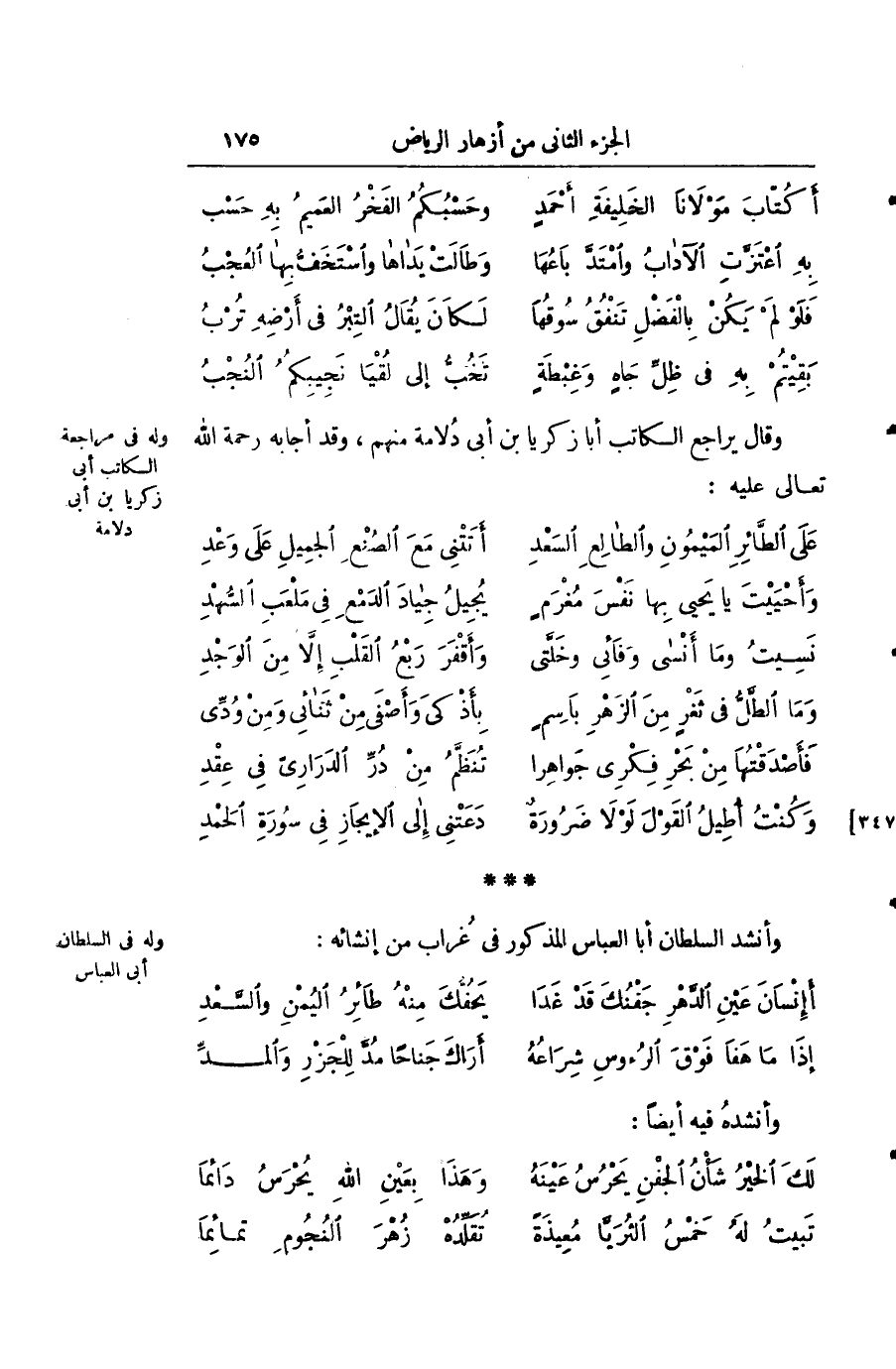وقال يراجع الكتاب أبا زكريا بن أبي دلامة منهم، وقد أجابه رحمه الله تعالى عليه: