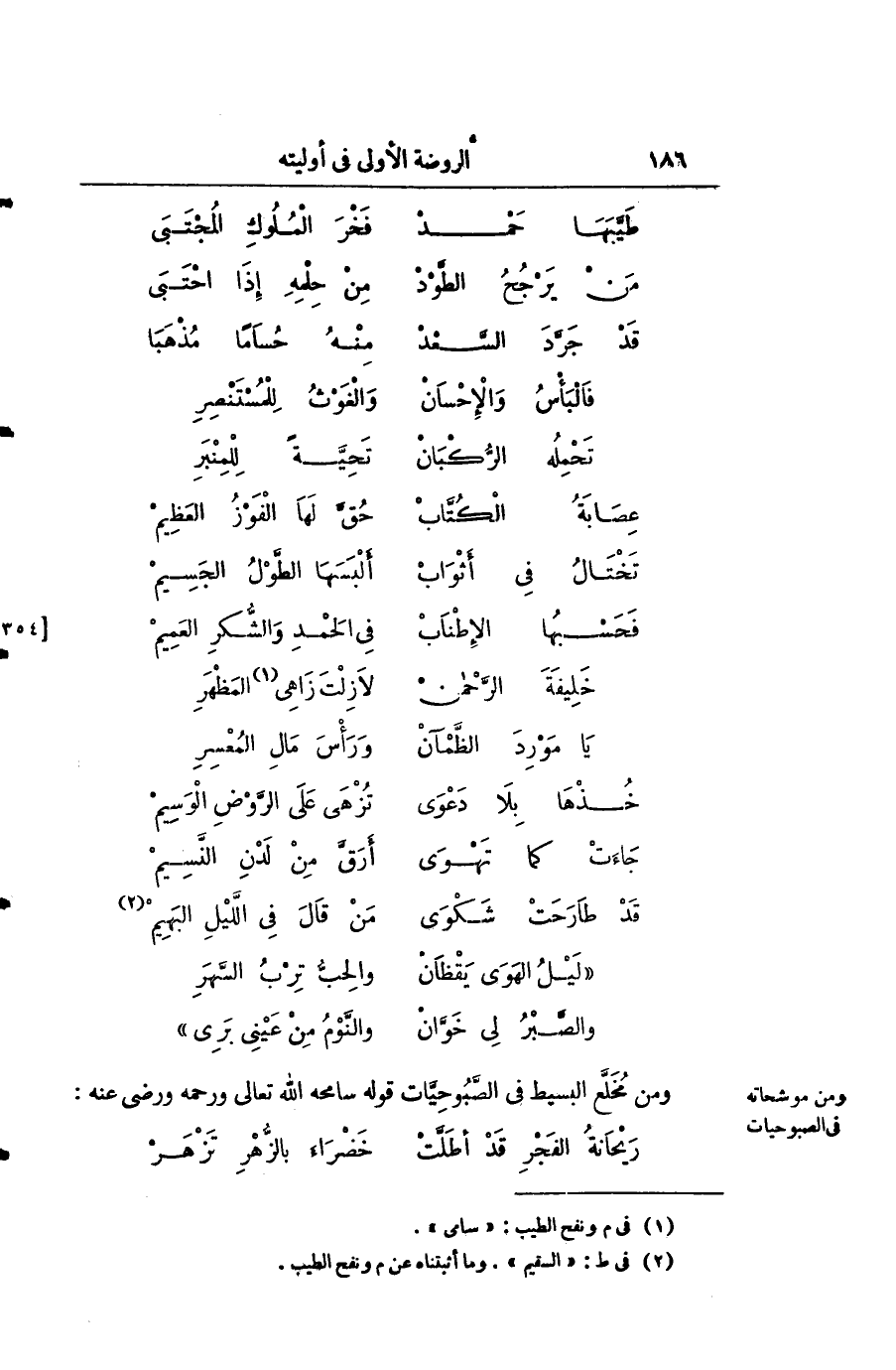 ومخلع البسيط في الصبوحيات قوله سامحه الله تعالى ورحمه ورضى عنه: