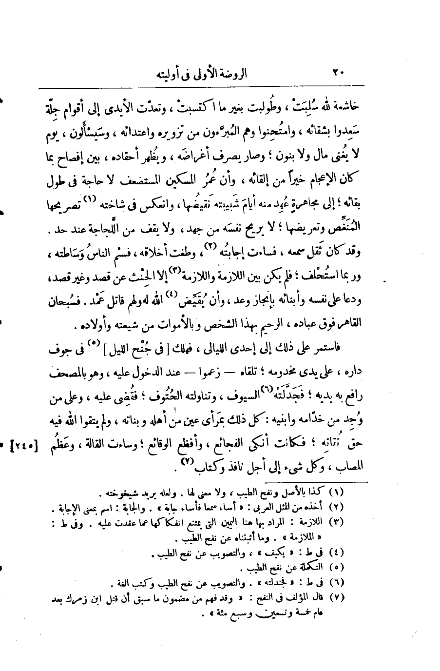 خاشعة لله سلبت، وطولبت بغير ما اكتسبت، وتعدت الأيدي إلى أقوام جلة سعدوا بشفائه، وامتحنوا وهم المبرءون من تزويره واعتدائه وسيسألون يوم لا يغني مال ولا بنون؛ وصار يصرف أغراضه، ويظهر أحقاده بين إفصاح بما كان الإعجام خيراً من إلقائه، وأنَّ عمر المسكين المستضعف لا حاجة في طول بقائه؛ إلى مجاهرة عهد منه أيام شبيبته نقيضها، وانعكس في شاخته تصريحها المنغص وتعريضها؛ لا يريح نفسه من جهد ولا يقف من اللجاجة عند حدّثني. وقد كان ثقل سمعه فساءت إجابته وطغت أخلاقه فسم الناس وساطته وبما استحلف؛ فلم يكن بين اللازمة واللازمة إلاّ الحنث عن قصد وغير قصد، ودعا على نفسه وأبنائه بإنجاز وعد وأن يقيض الله ولهم قاتل عمد. فسبحان القهار فوق عباده، الرحيم بهذا الشخص وبالأموات من شيعته وأولاده.