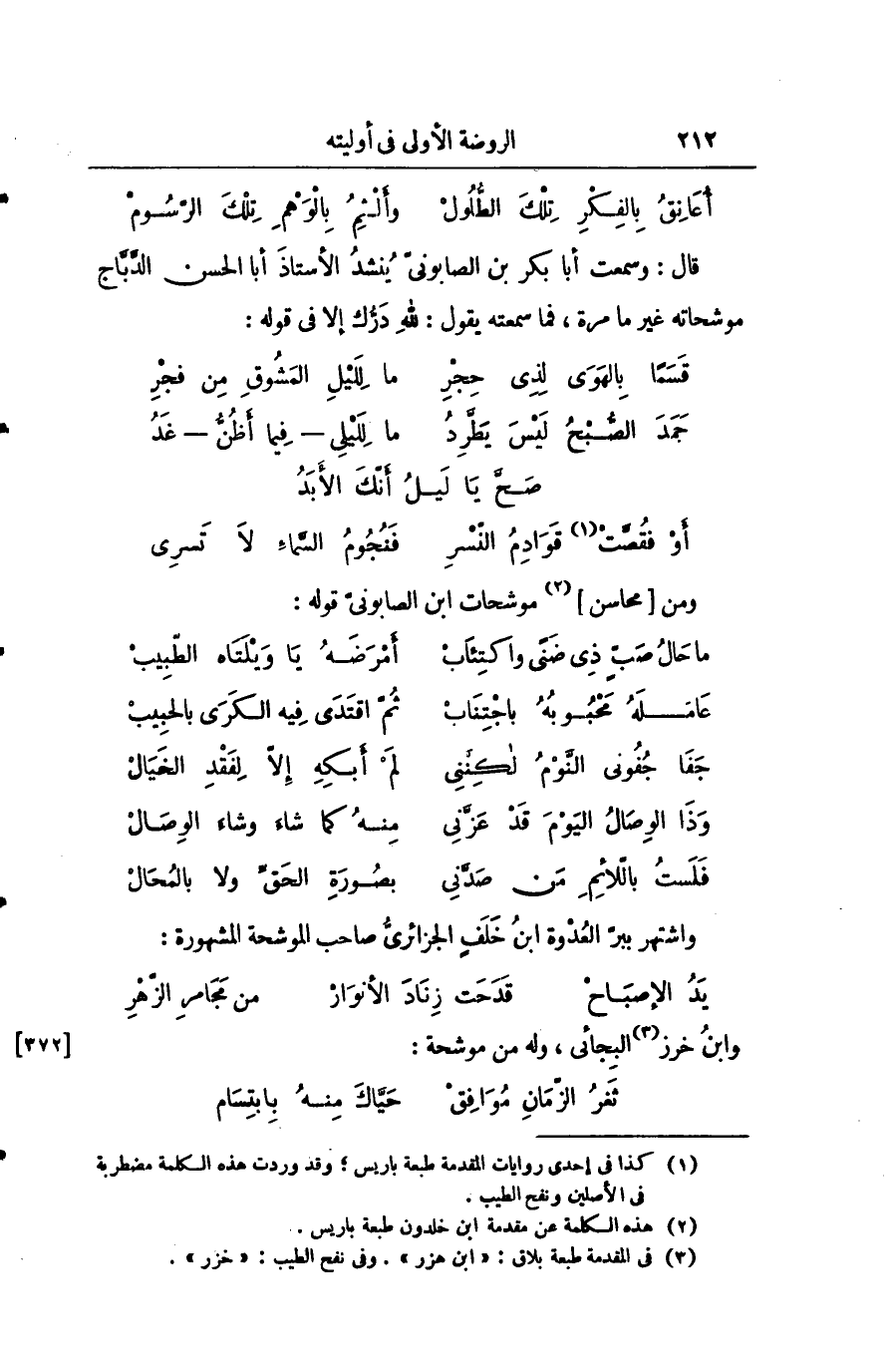 قل: وسمعت أبا بكر بن الصابوني ينشد الأستاذ أبا الحسن الدباج موشحاته غير ما مرة، فما سمعته يقول: لله درك إلاّ في قوله: