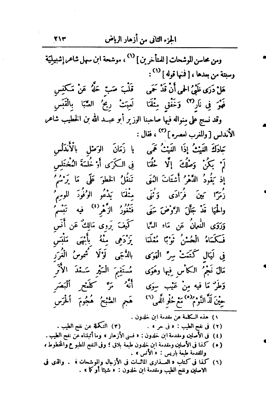 ومن محاسن الموشحات للمتأخرين موشحة أبن سهل شاعر اشبيلية وسبتة من بعدها فمنها قوله: