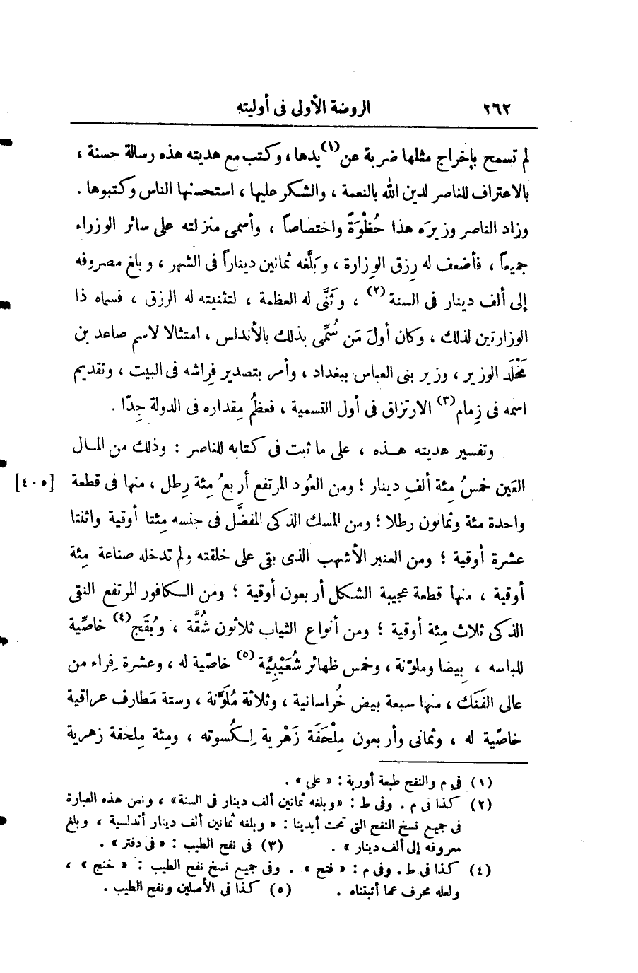لم تسمح بإخراج مثلها ضربة عن يدها وكتب مع هديته هذه رسالة حسنة بالاعتراف للناصر لدين الله بالنعمة والشكر عليها واستحسنها الناس وكتبوها. وزاد الناصر وزيره هذا حظوة واختصاص وأسمى منزلته على سائر الوزراء جميعا فأضعف له رزق الوزارة وبلغة ثمانين دينارا في الشهر وبلغ مصروفه إلى ألف دينار في السنة وثنى له العظمة لتثنيته له الرزق فسماه ذا الوزارتين لذلك وكان أوّل من سمى بذلك بالأندلس امتثالا لاسم صاعد بن مخلد الوزير بني العباس ببغداد وأمر بتصدير فراشه في البيت وتقديم اسمه في زمام الارتزاق في أوّل التسمية فعظم مقداره في الدولة جدا.
