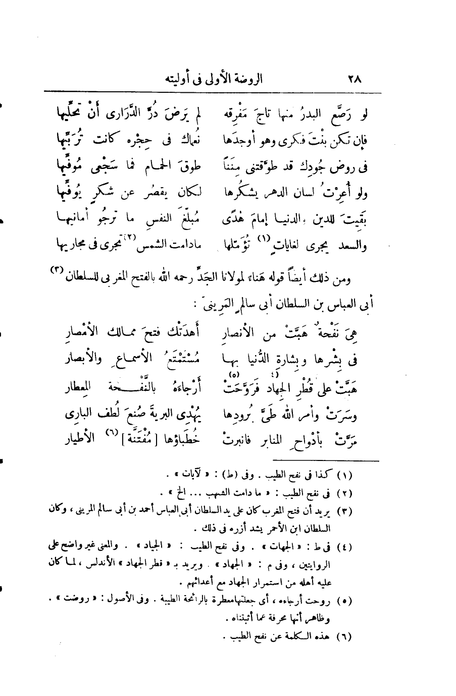 ومن ذلك أيضاً قوله هناء لمولانا الجد رحمه الله بالفتح المغربي للسلطان أبي العباس بن السلطان أبي سالم المريني: