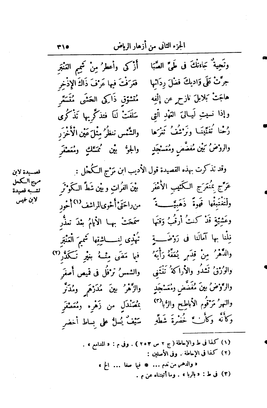وقد تذكرت بهذه القصيدة قول الأديب أبن مرج الكحل: