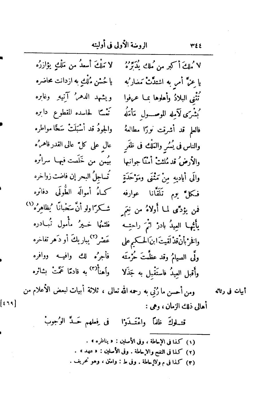 يا عز أمر به اشتدت مضاربه ... يا حسن ملك به أزدانت محاضره