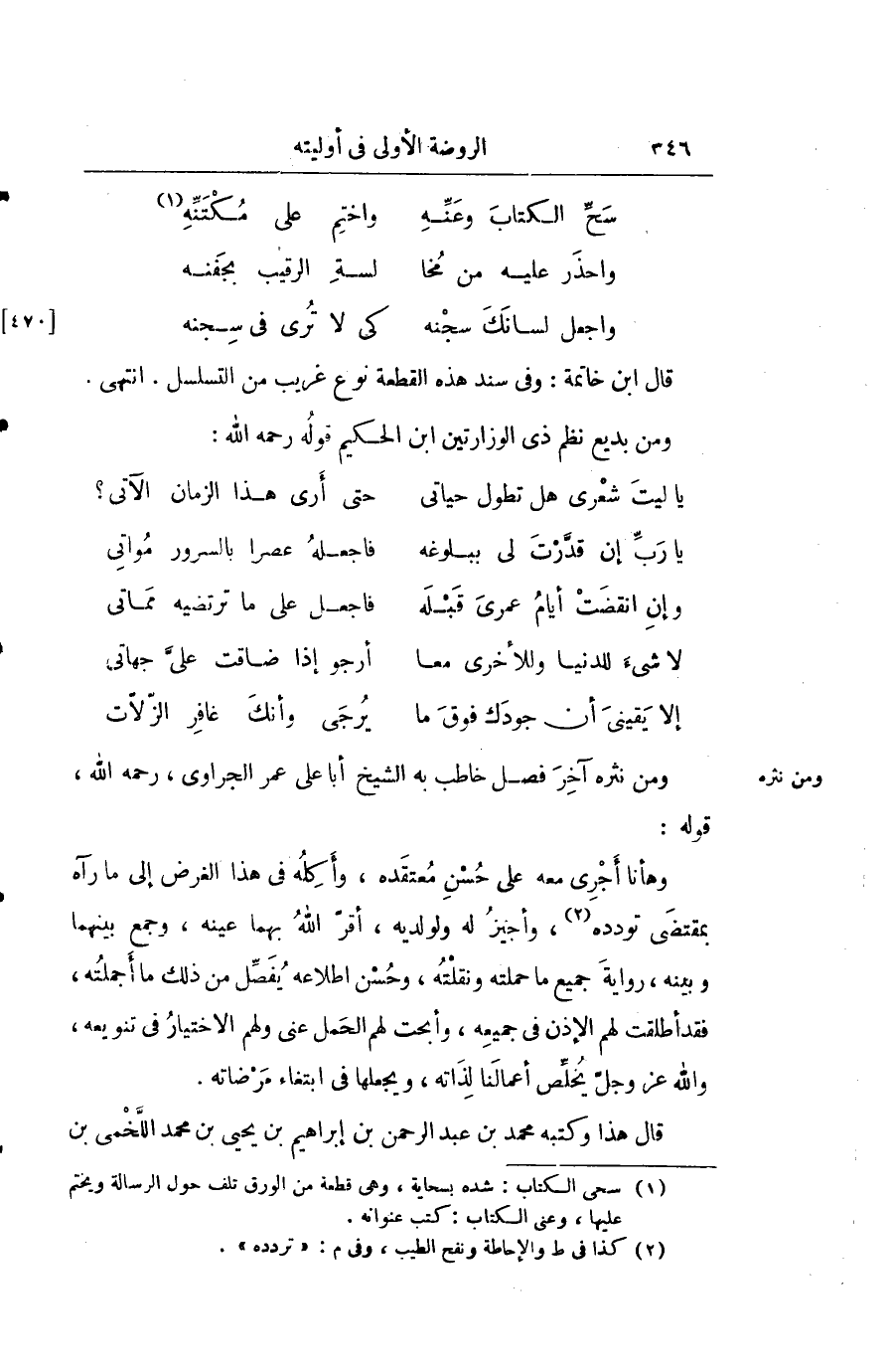 ومن بديع نظم ذي الوزارتين أبن الحكيم قوله رحمه الله: