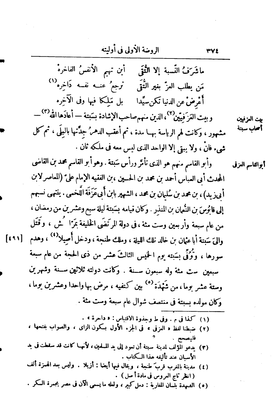 وبين العزفين، الذين منهم صاحب الشهادة بسبتة أعادها الله مشهور، وكانت لهم الرياسة بها مدة، ثم أعقب الدهر جدتها بالبلى، ثم كل شيء فأن ولا يبقى إلاّ الواحد الذي ليس معه ملكه ثان.