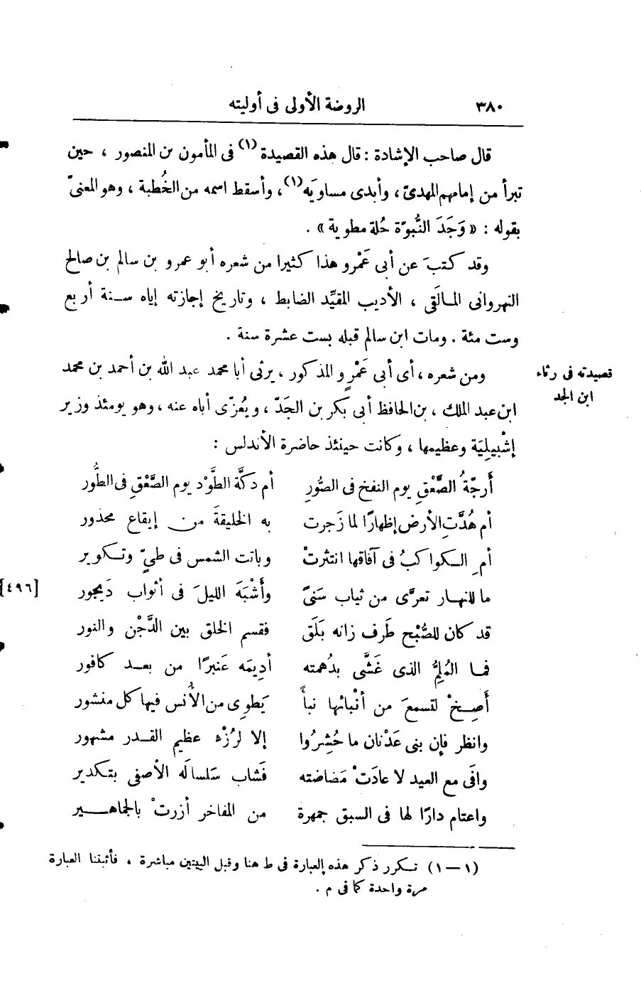 ومن شعره أي أبي همرو المذكور يرثي أبا محمّد عبد الله أحمد بن محمّد أبن عبد الملك بن الحافظ أبي بكر بن الجد ويعزي أباه عنه وهو يومئذ وزير إشبيلية وعظيمها وكانت حينئذ حاضرة الأندلس: