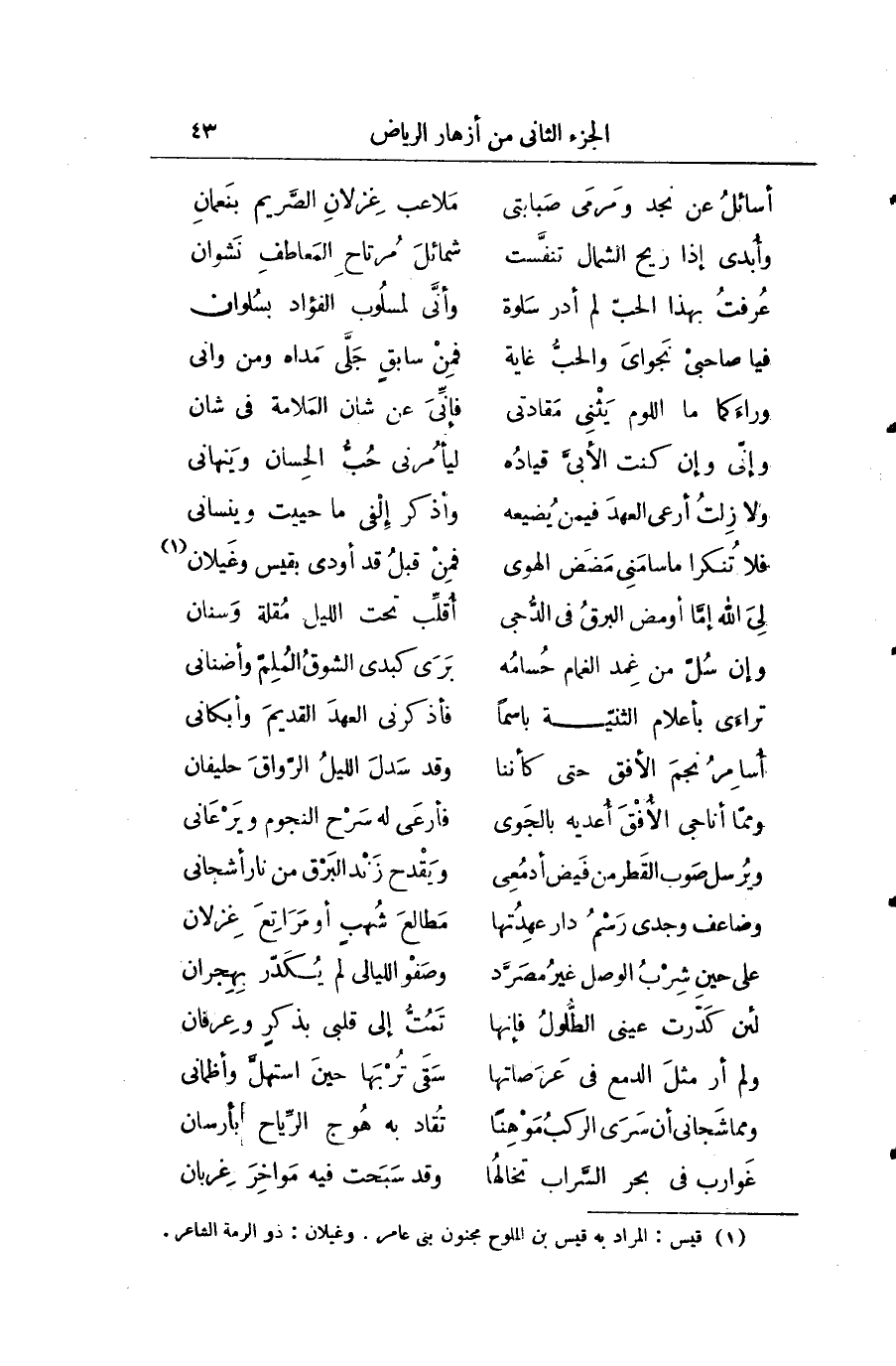 أسائل عن نجد ومرمى صبابتي ... ملاعب غزلان الصريم بنعمان