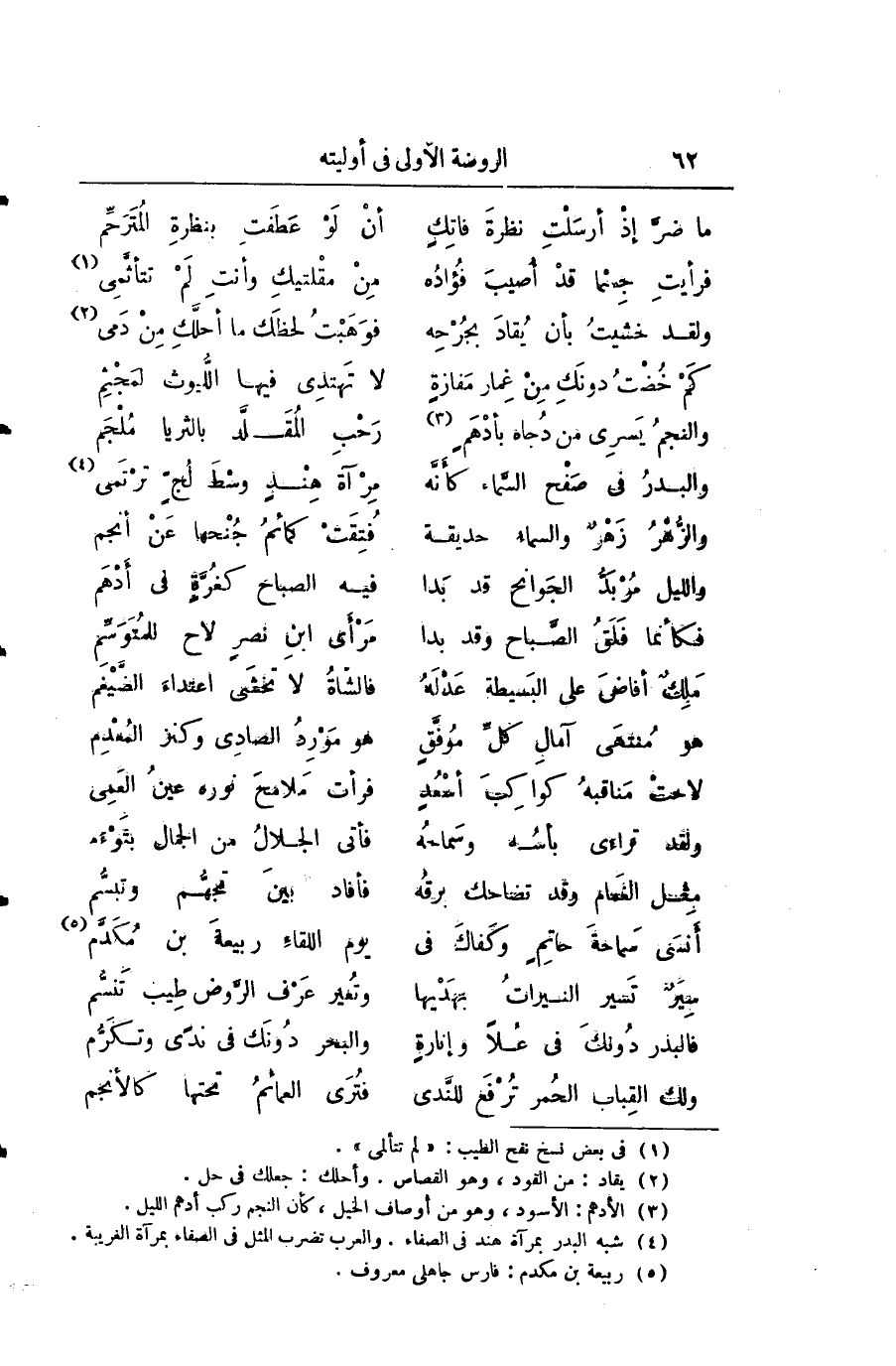 والزهر زهر والسماء حديقة ... فتقت كمائم جنحها عن أنجم