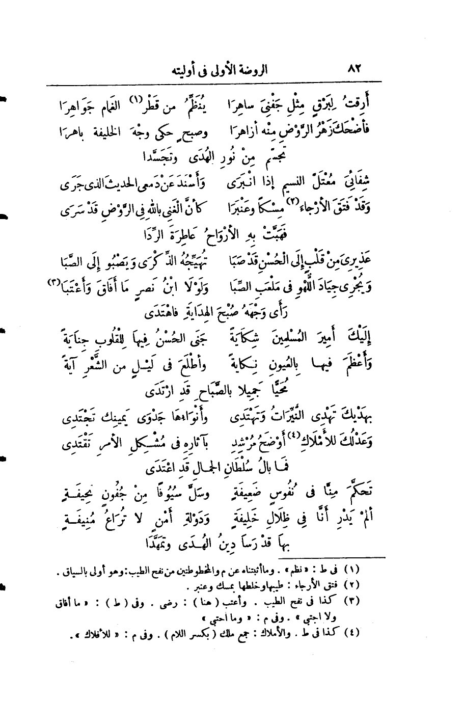 فأضحط زهر الروض منه أزهارا ... وصبح حكى وجه الخليفة باهرا