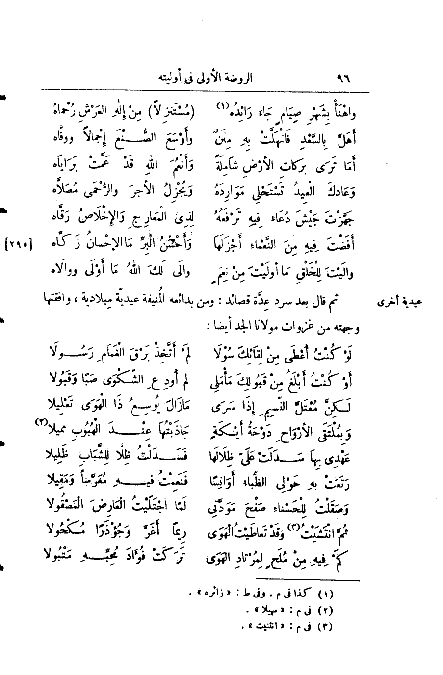 ثم قال بعد سرد عدة قصائد: ومن بدائعه المنيفة عيدية ميلاد وافقتها وجهته من غزوات مولانا الجد أيضاً: