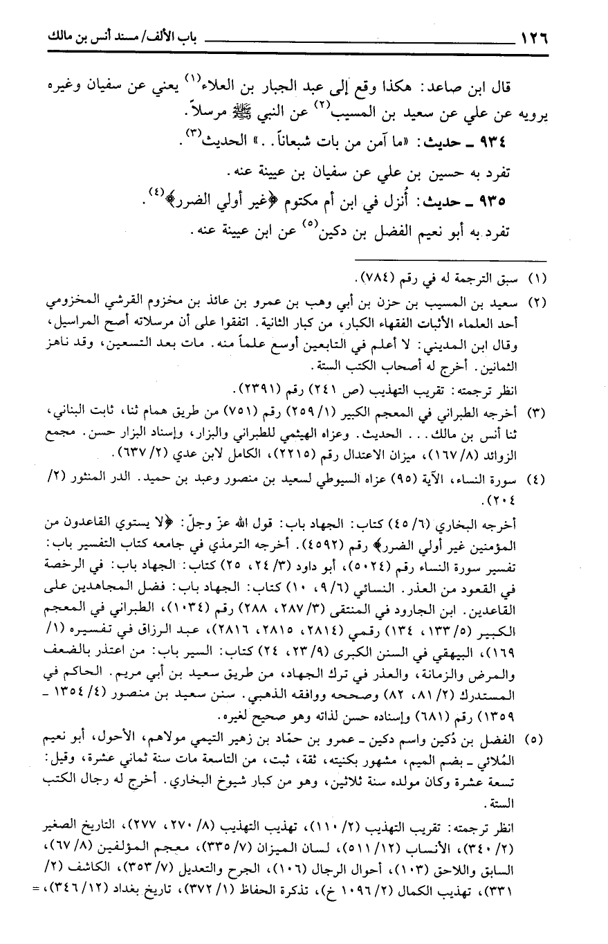935 - حَدِيث: أنزل فِي ابْن أم مَكْتُوم (غير أولي الضَّرَر) .