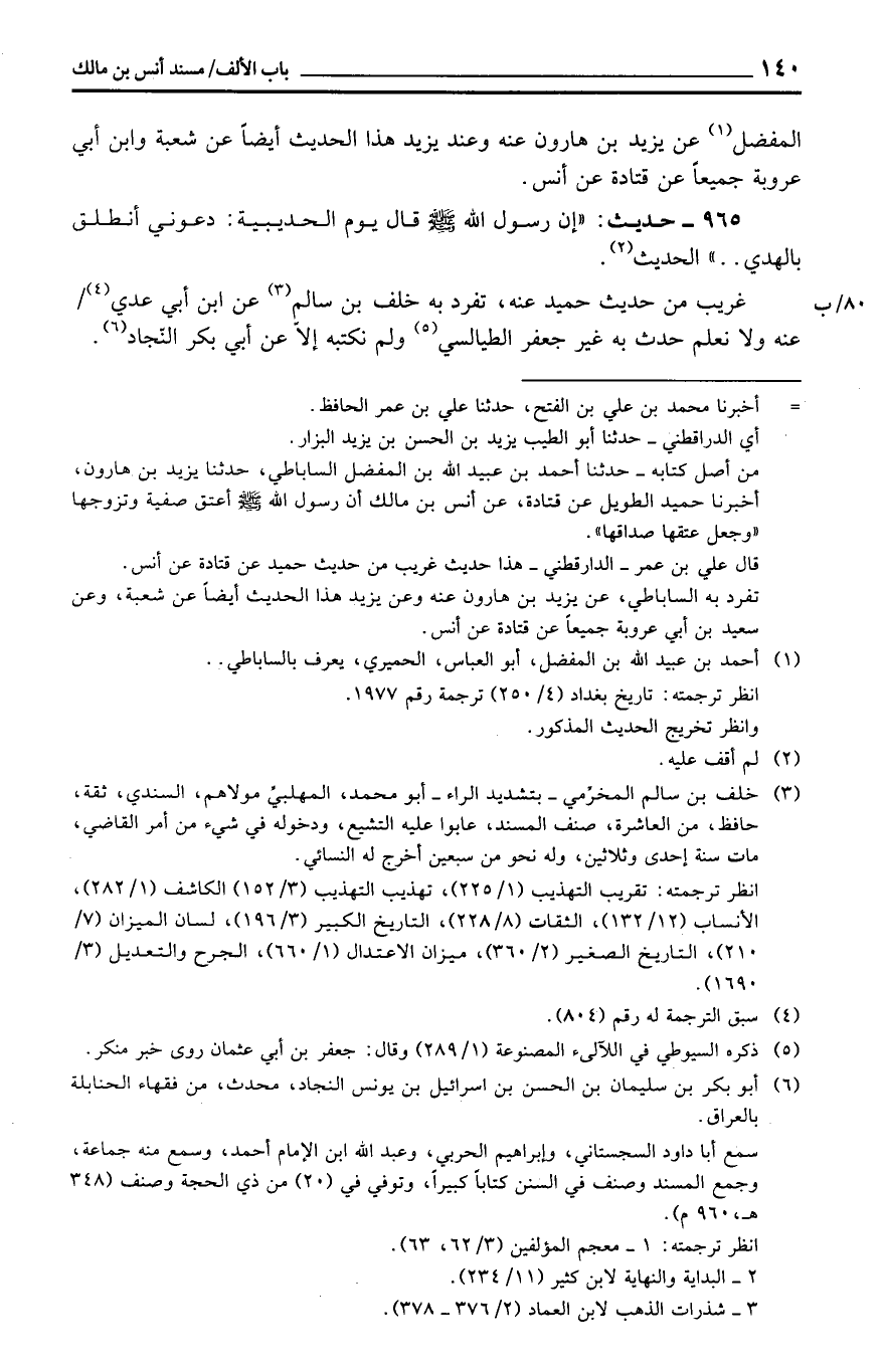 غَرِيب من حَدِيث حميد عَنهُ، تفرد بِهِ خلف بن سَالم عَن ابْن أبي عدي / عَنهُ وَلَا نعلم حدث بِهِ غير جَعْفَر الطَّيَالِسِيّ وَلم نَكْتُبهُ إِلَّا عَن أبي بكر النجاد.