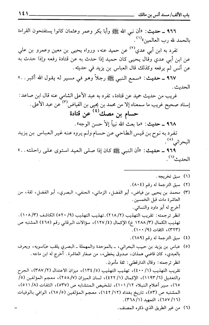 966 - حَدِيث: ((أَن نَبِي الله وَأَبا بكر وَعمر وَعُثْمَان كَانُوا يستفتحون الْقِرَاءَة بِالْحَمْد لله رب الْعَالمين)) .