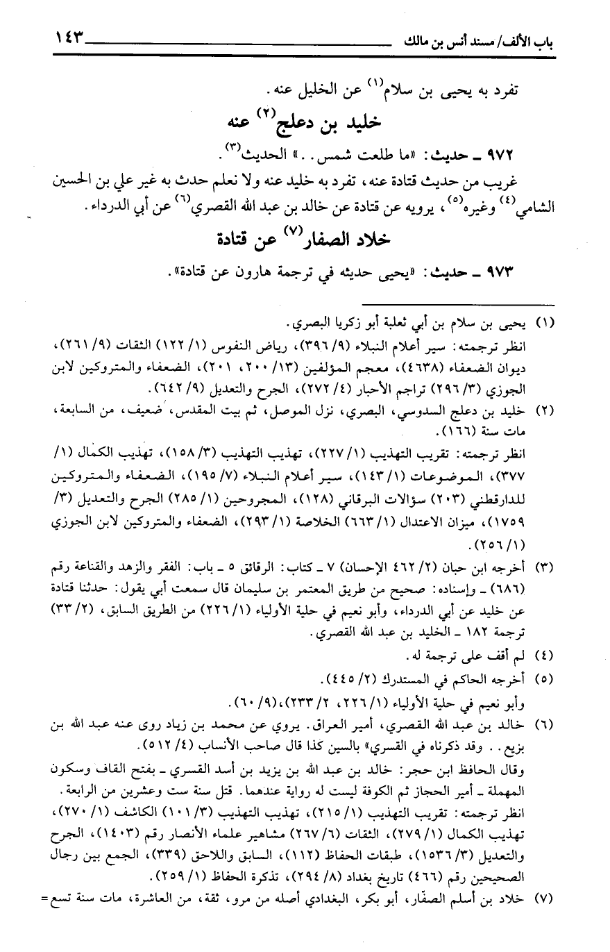 973 - حَدِيث: ((يحيى حَدِيثه فِي تَرْجَمَة هَارُون عَن قَتَادَة)) .