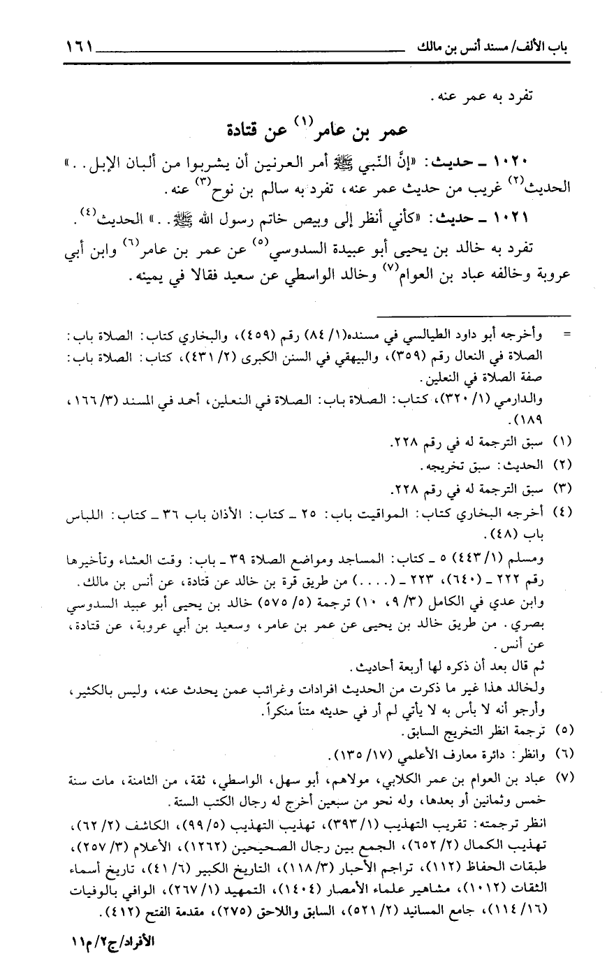 1020 - حَدِيث: ((إِن النَّبِي أَمر الْعرنِين أَن يشْربُوا من ألبان الْإِبِل. .)) الحَدِيث غَرِيب من حَدِيث عمر عَنهُ، تفرد بِهِ سَالم بن نوح عَنهُ.