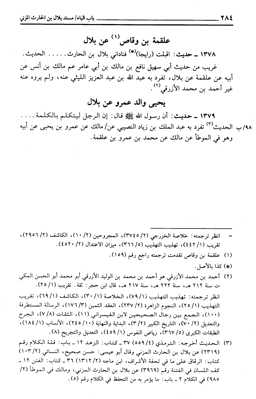 1378 - حَدِيث: اقبلت (رايجا) فناداني بِلَال بن الْحَارِث ... . . الحَدِيث.