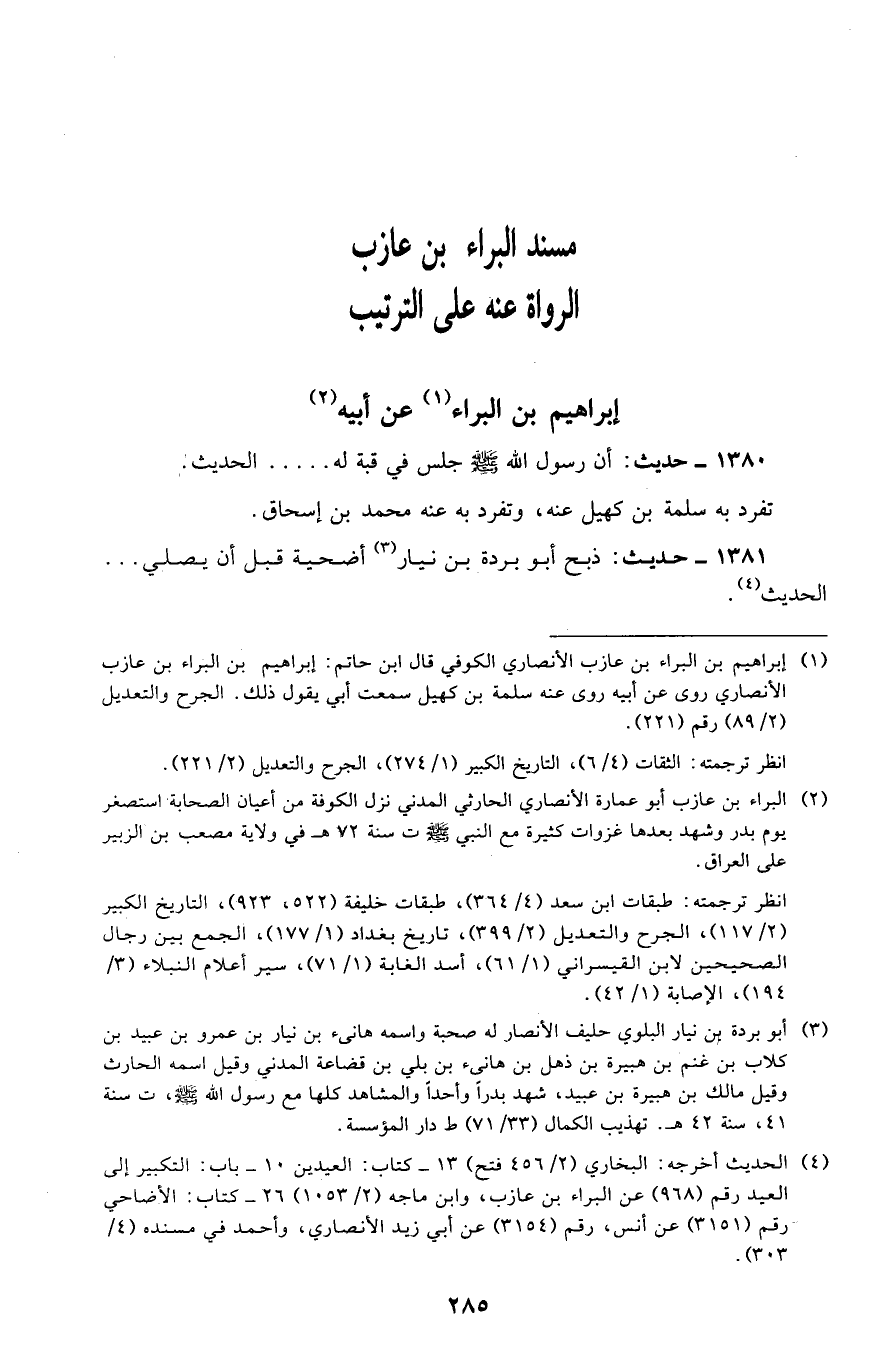 مُسْند الْبَراء بن عَازِب الروَاة عَنهُ على التَّرْتِيب