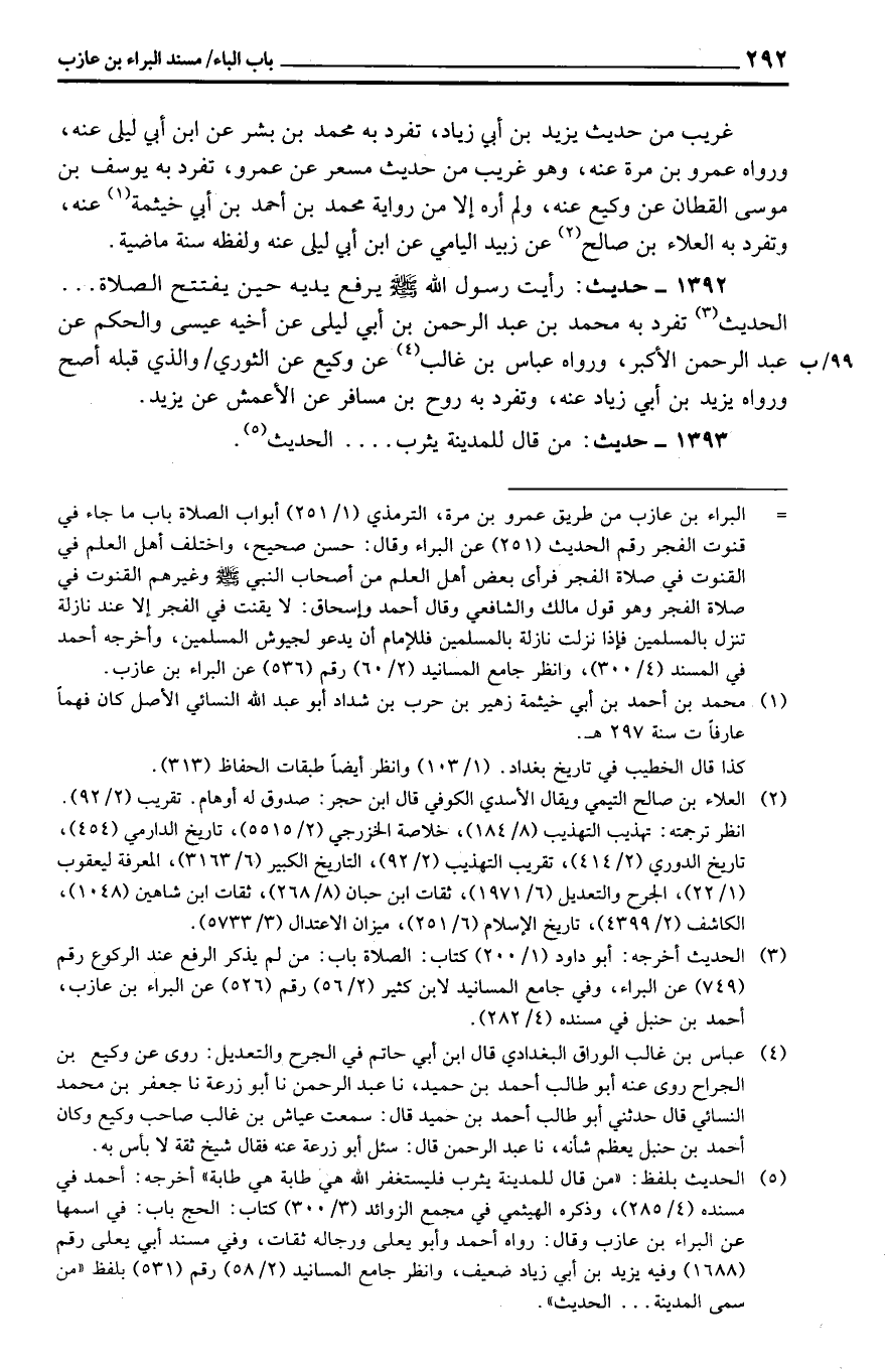 1392 - حَدِيث: رَأَيْت رَسُول الله يرفع يَدَيْهِ حِين يفْتَتح الصَّلَاة ... الحَدِيث تفرد بِهِ مُحَمَّد بن عبد الرَّحْمَن بن أبي ليلى عَن أَخِيه عِيسَى وَالْحكم عَن عبد الرَّحْمَن الْأَكْبَر، وَرَوَاهُ عَبَّاس بن غَالب عَن وَكِيع عَن الثَّوْريّ / وَالَّذِي قبله أصح وَرَوَاهُ يزِيد بن أبي زِيَاد عَنهُ، وَتفرد بِهِ روح بن مُسَافر عَن الْأَعْمَش عَن يزِيد.