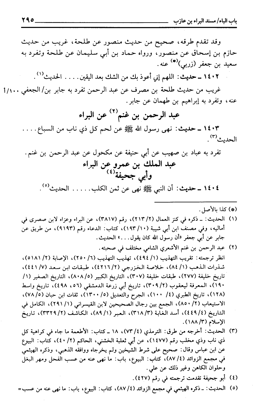 عبد الرَّحْمَن بن غنم عَن الْبَراء