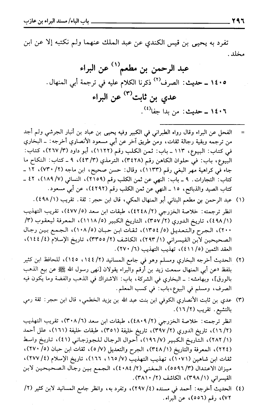 1405 - حَدِيث: الصّرْف ذكرنَا الْكَلَام عَلَيْهِ فِي تَرْجَمَة أبي الْمنْهَال.