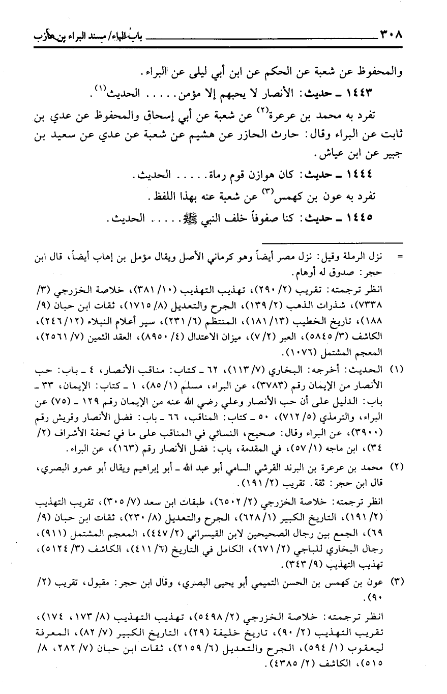 تفرد بِهِ مُحَمَّد بن عرْعرة عَن شُعْبَة عَن أبي إِسْحَاق وَالْمَحْفُوظ عَن عدي بن ثَابت عَن الْبَراء وَقَالَ: حَارِث الحازر عَن هشيم عَن شُعْبَة عَن عدي عَن سعيد بن جُبَير عَن ابْن عَيَّاش.